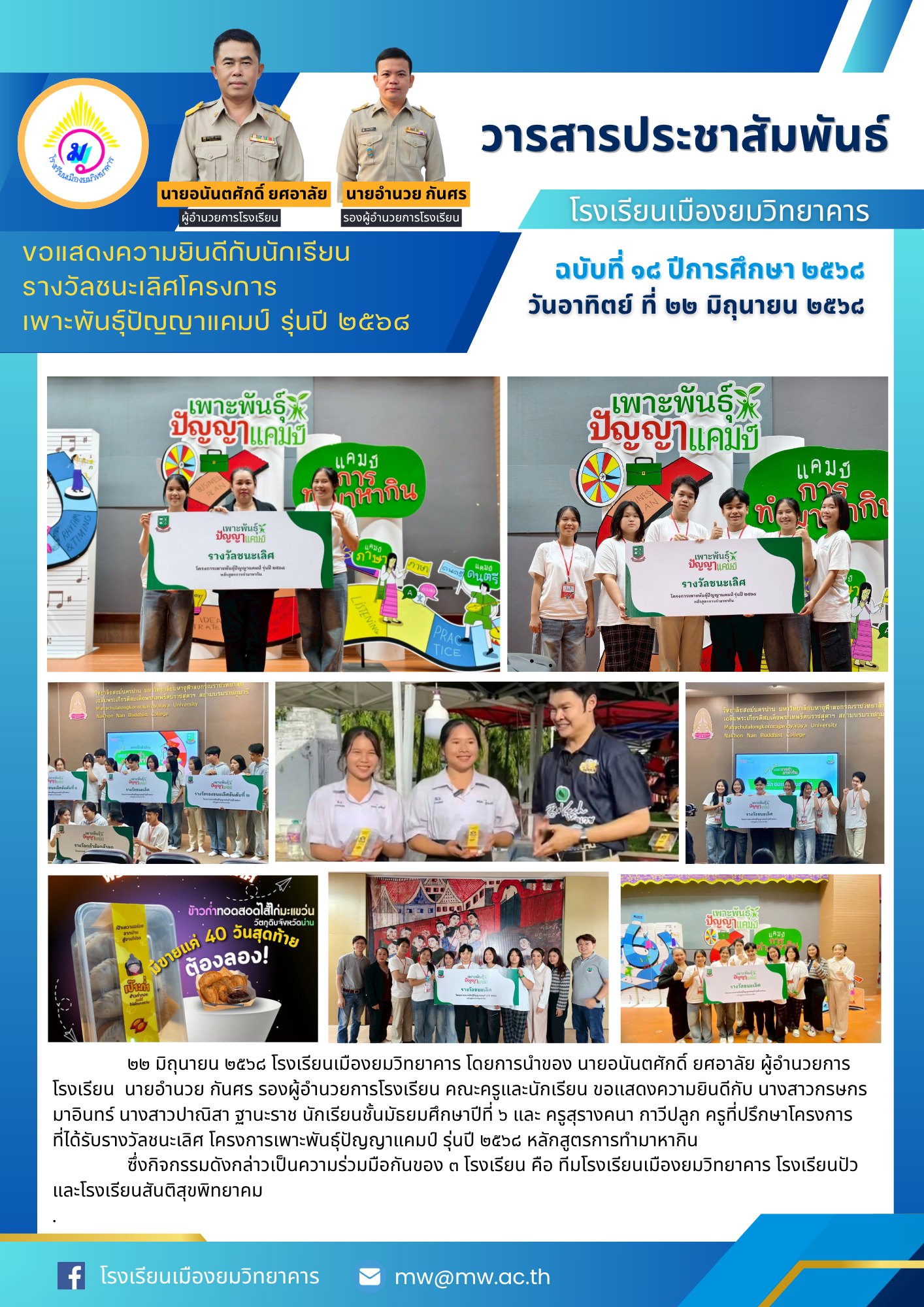 ข่าวประชาสัมพันธ์ ขอขอบคุณทุกท่านที่ร่วมสนับสนุนโรงเรียน Byadmin กันยายน 30, 2024กันยายน 30, 2024 โรงเรียนเมืองยมวิทยาคาร ขอขอบคุณทุกท่านที่ร่วมสนับสนุนโ…
