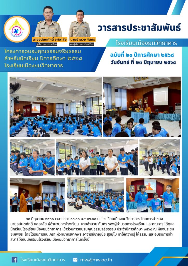 ข่าวประชาสัมพันธ์ พิธีตักบาตรข้าวสารอาหารแห้ง เนื่องในวันครบรอบวันสถาปนาโรงเรียน ครบรอบ ๒๗ ปี Byadmin กันยายน 30, 2024 ๙ สิงหาคม ๒๕๖๗ โรงเรียนเมืองยมวิทยาคาร โดยการนำของ นายอ…